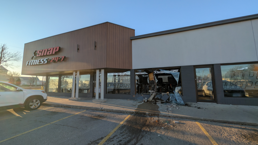 The crash happened around 4 in the morning. At the time, the 24-hour gym was empty, and no one was injured.